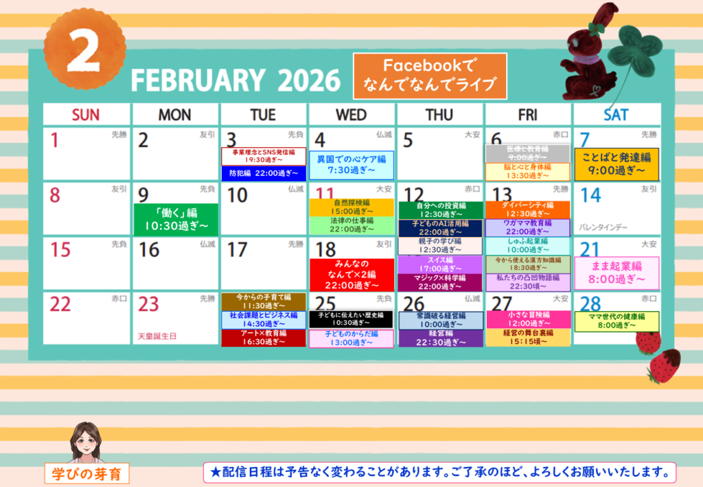 (配信予定は予告なく変わることもあります。配信予定の最新情報は最新のアーカイブでご確認ください。)
